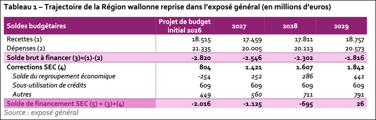 Source : Rapport de la Cour des comptes sur le budget wallon 2026.